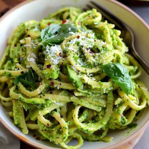 I’ve made this recipe on busy weeknights and quick lunches, and it never disappoints. The avocado blends with basil and garlic to create a silky pesto that coats every bite of pasta perfectly.