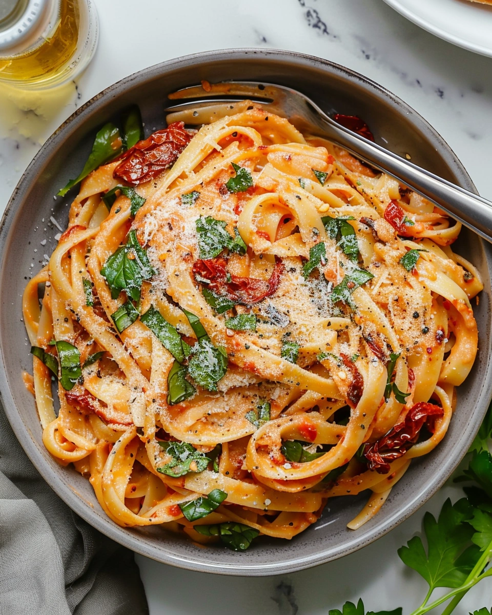 This sun-dried tomato pasta recipe is a simple yet flavorful dish that’s perfect for any occasion. It’s creamy, comforting, and easy to make with pantry staples.